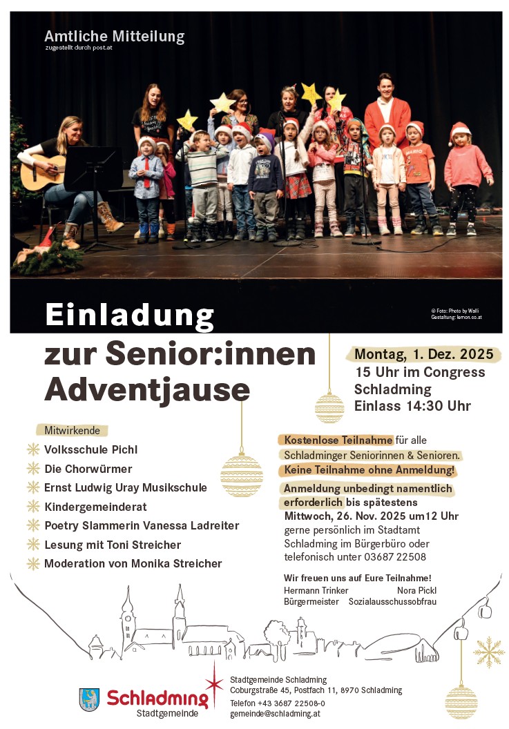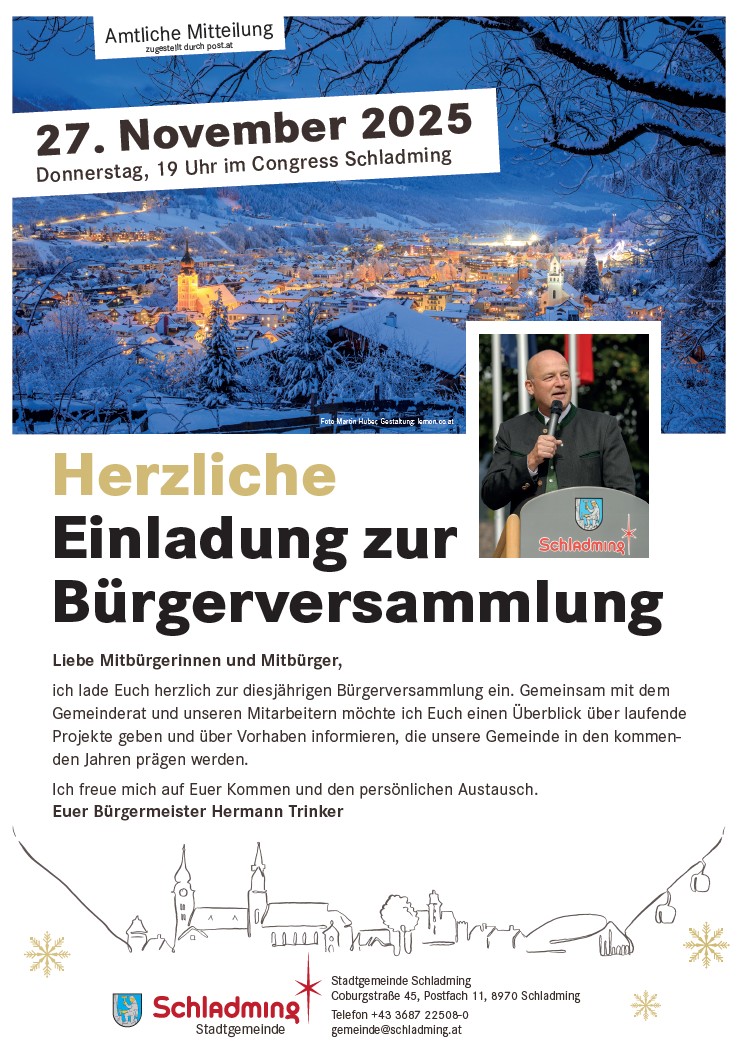 Wegen Arbeiten an der Wasserleitung muss die Mosergasse Höhe Nr. 139 bis 12.12.25 zeitweise voll gesperrt werden. Umleitung über die Rohrmooser Landesstraße möglich.